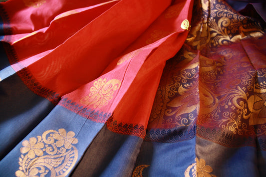 Dark Blue Pure Cotton Saree with Copper Zari work