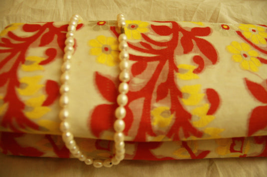 Cream White Pure Cotton Handwoven Saree | Bengali Jamdani Saree