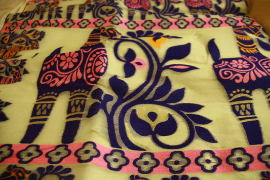 ‘Dani’, a vase. These Handwoven Sarees have floral geometric pattern designed intricately with vibrant colors reflecting the rich heritage of Bengal!