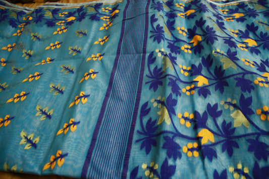 Sea Blue Handwoven Pure Cotton Saree | Bengali Jamdani Saree
