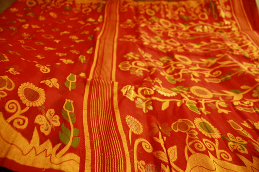 Red Pure Cotton Handwoven Saree | Bengali Jamdani Saree