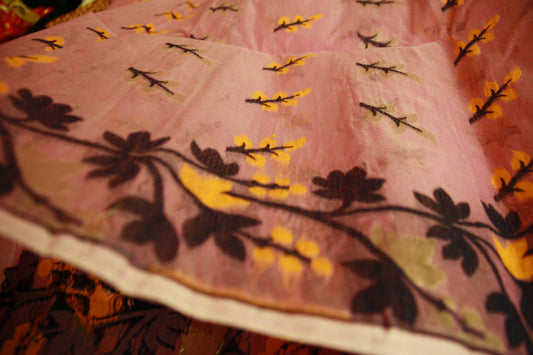 ‘Dani’, a vase. These Handwoven Sarees have floral geometric pattern designed intricately with vibrant colors reflecting the rich heritage of Bengal!