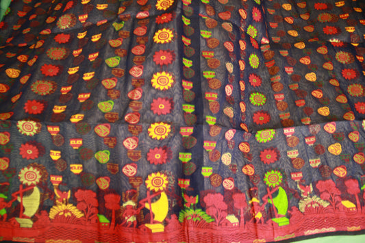Ink Blue Pure Cotton Handwoven Saree | Bengali Jamdani Saree