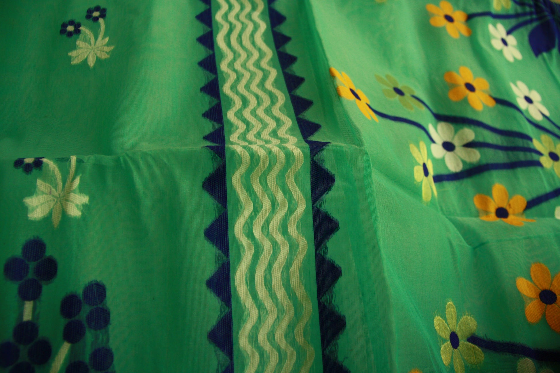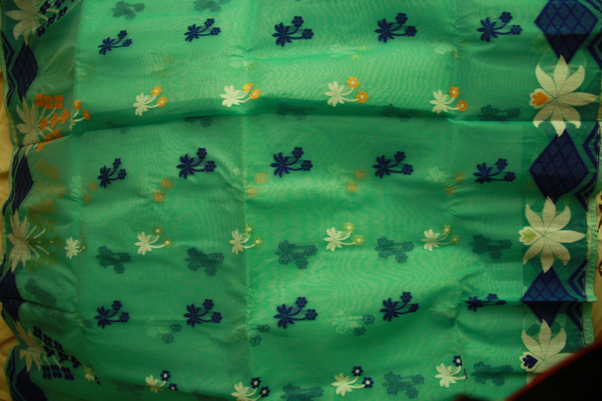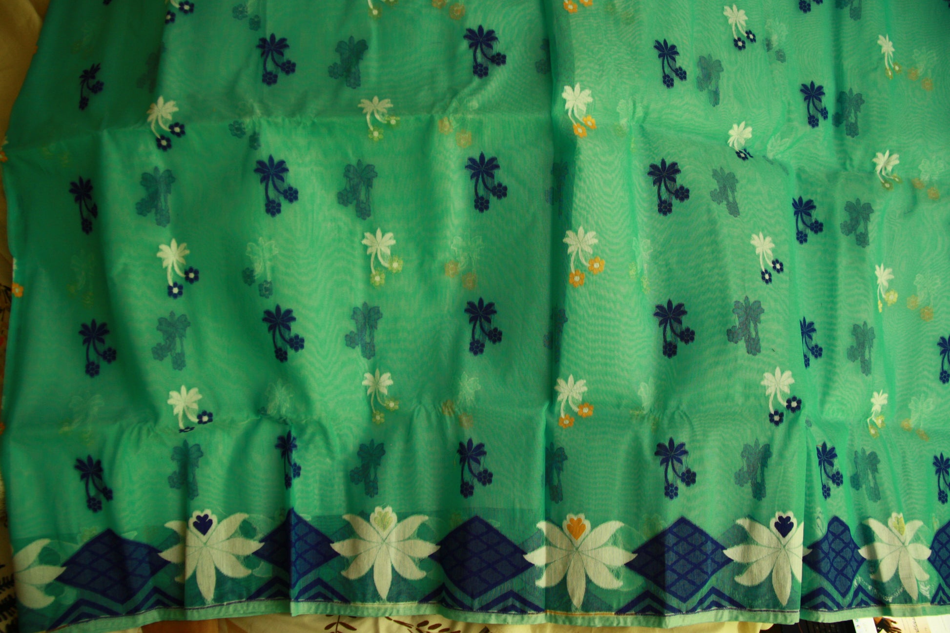 Coral Blue Pure Cotton Handwoven Saree | Bengali Jamdani Saree