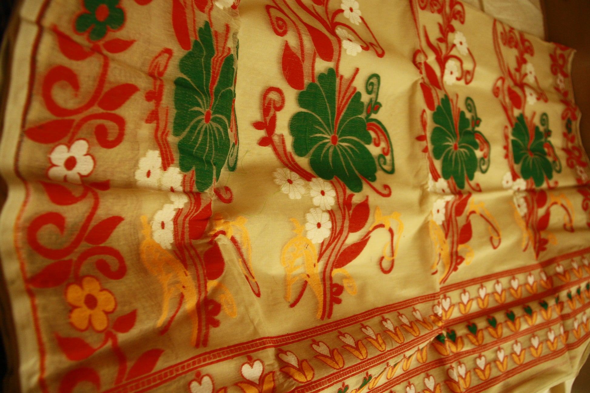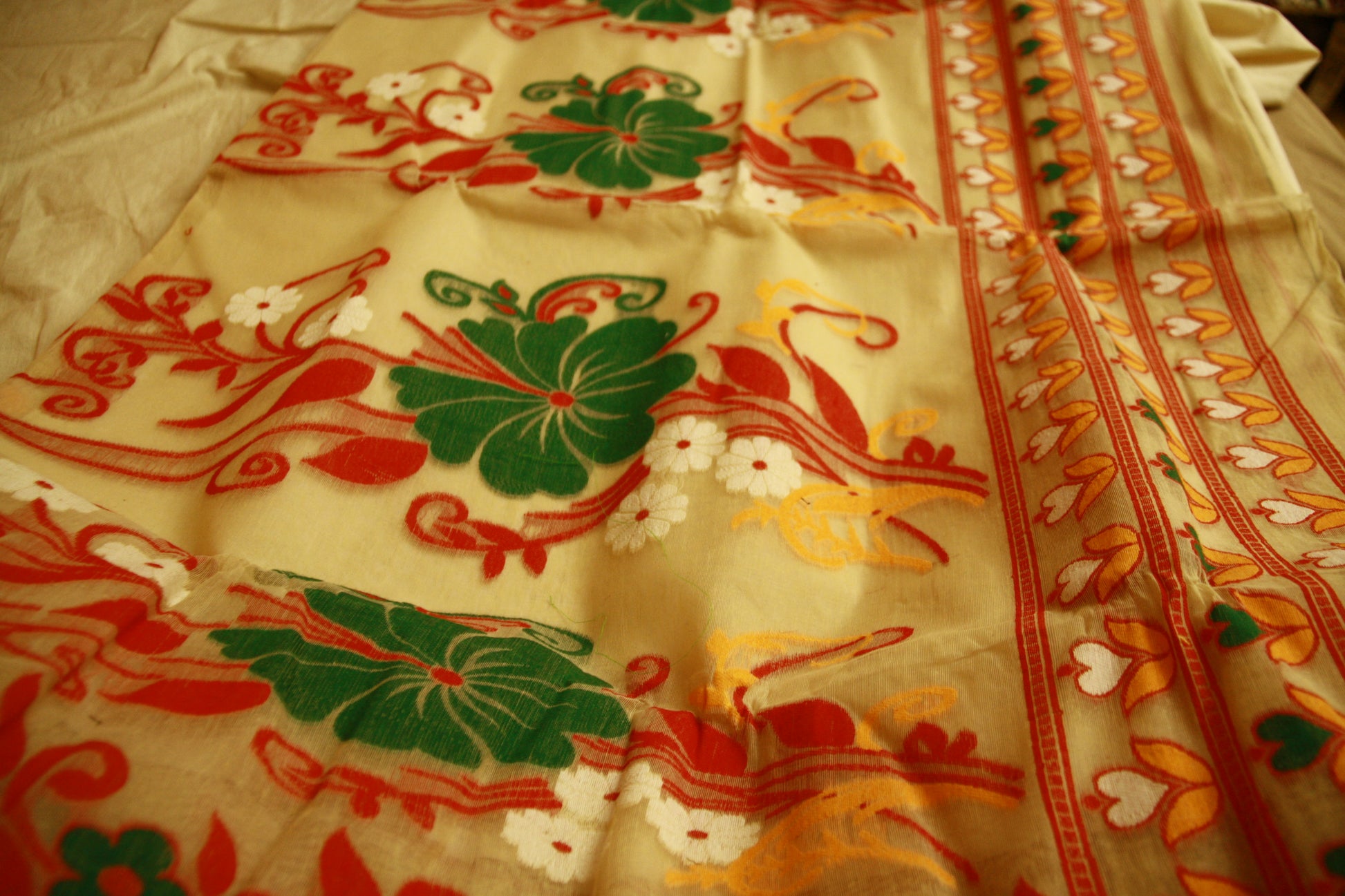 Cream White Pure Cotton Handwoven Saree | Bengali Jamdani Saree