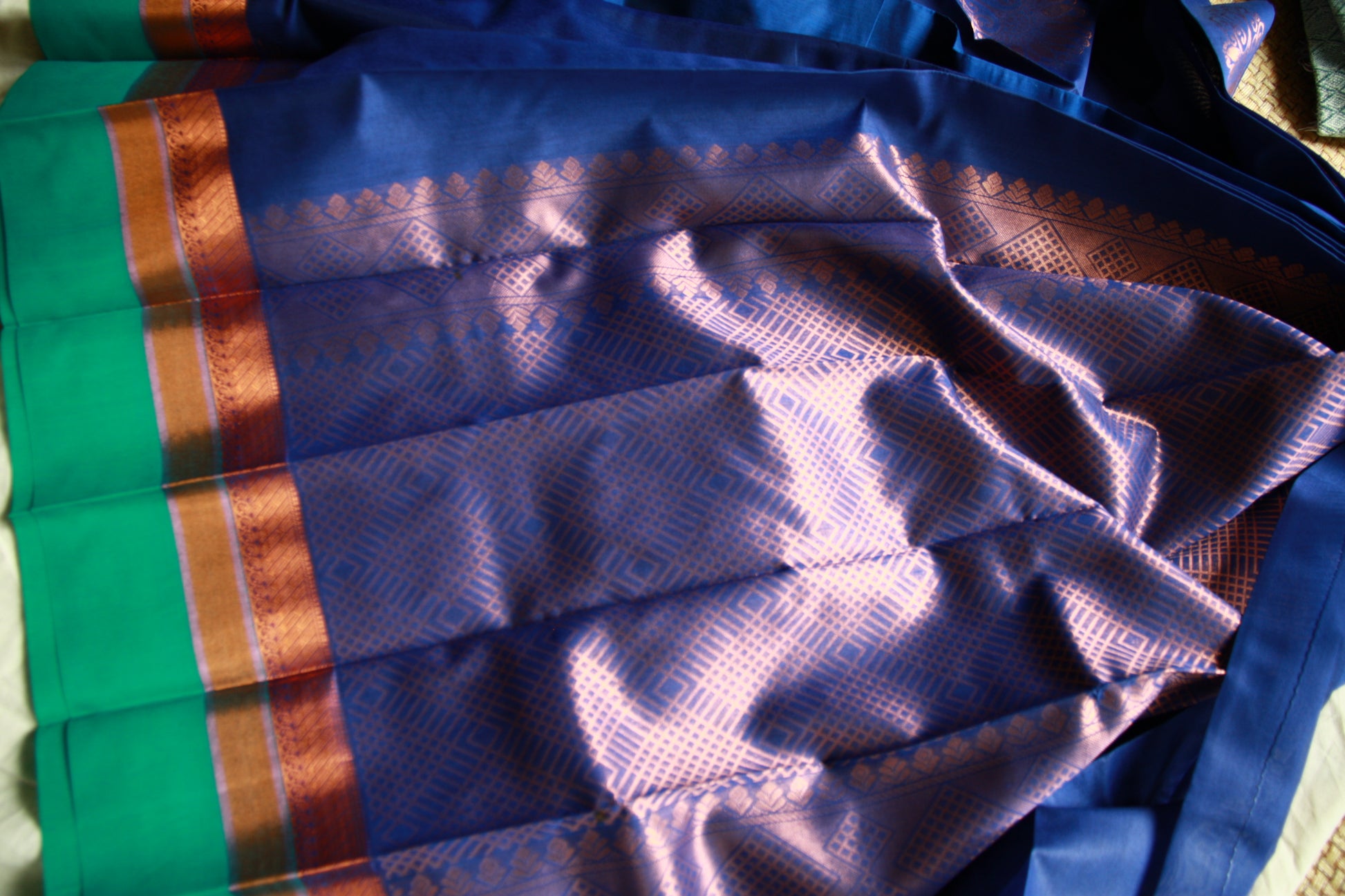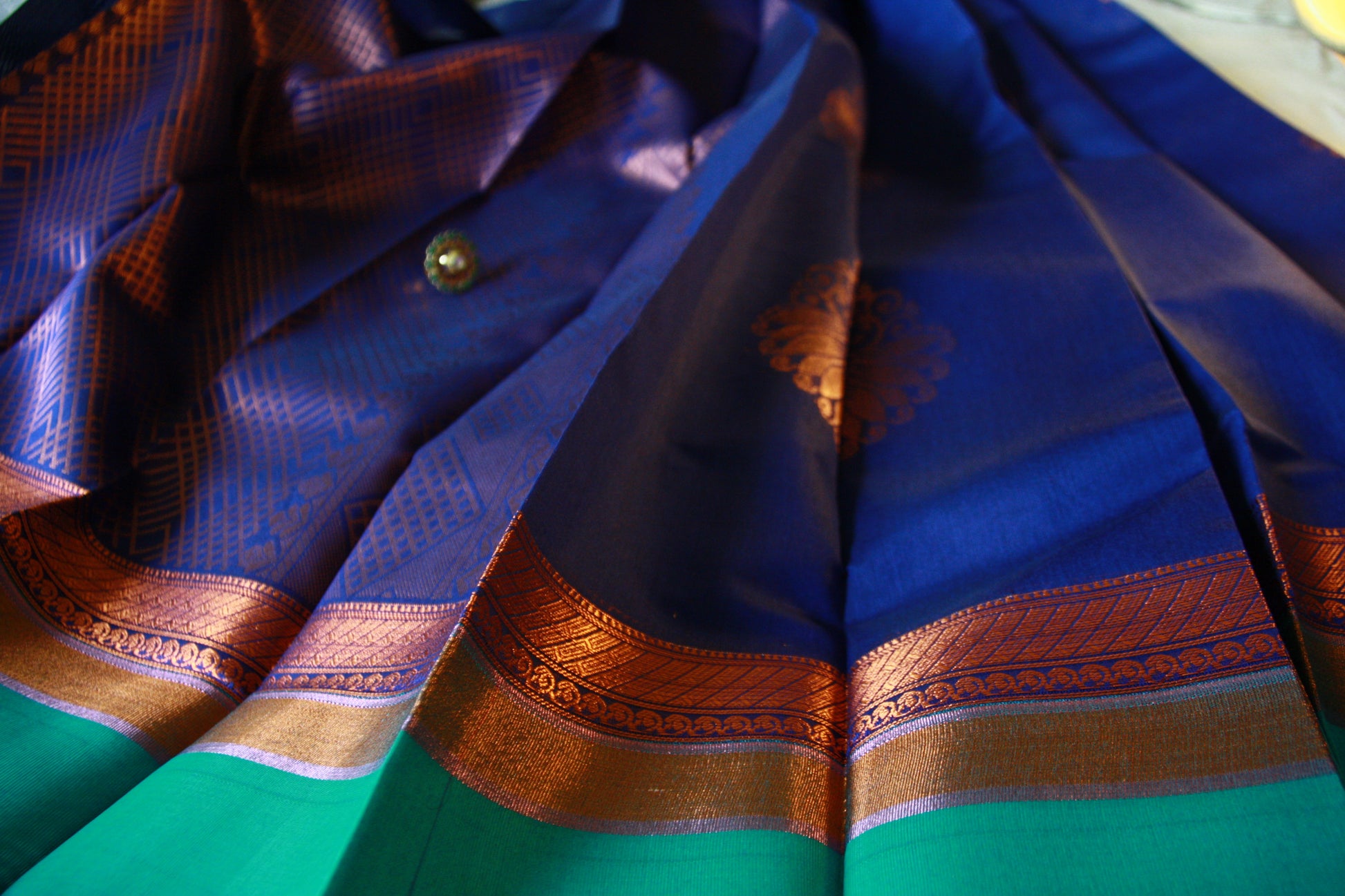 Dark Blue Pure Cotton Saree with Copper Zari work