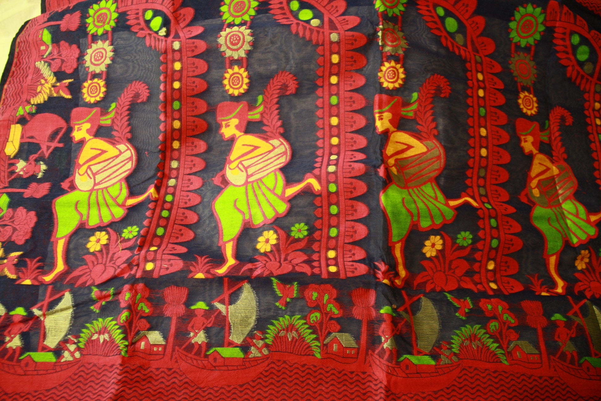 Ink Blue Pure Cotton Handwoven Saree | Bengali Jamdani Saree