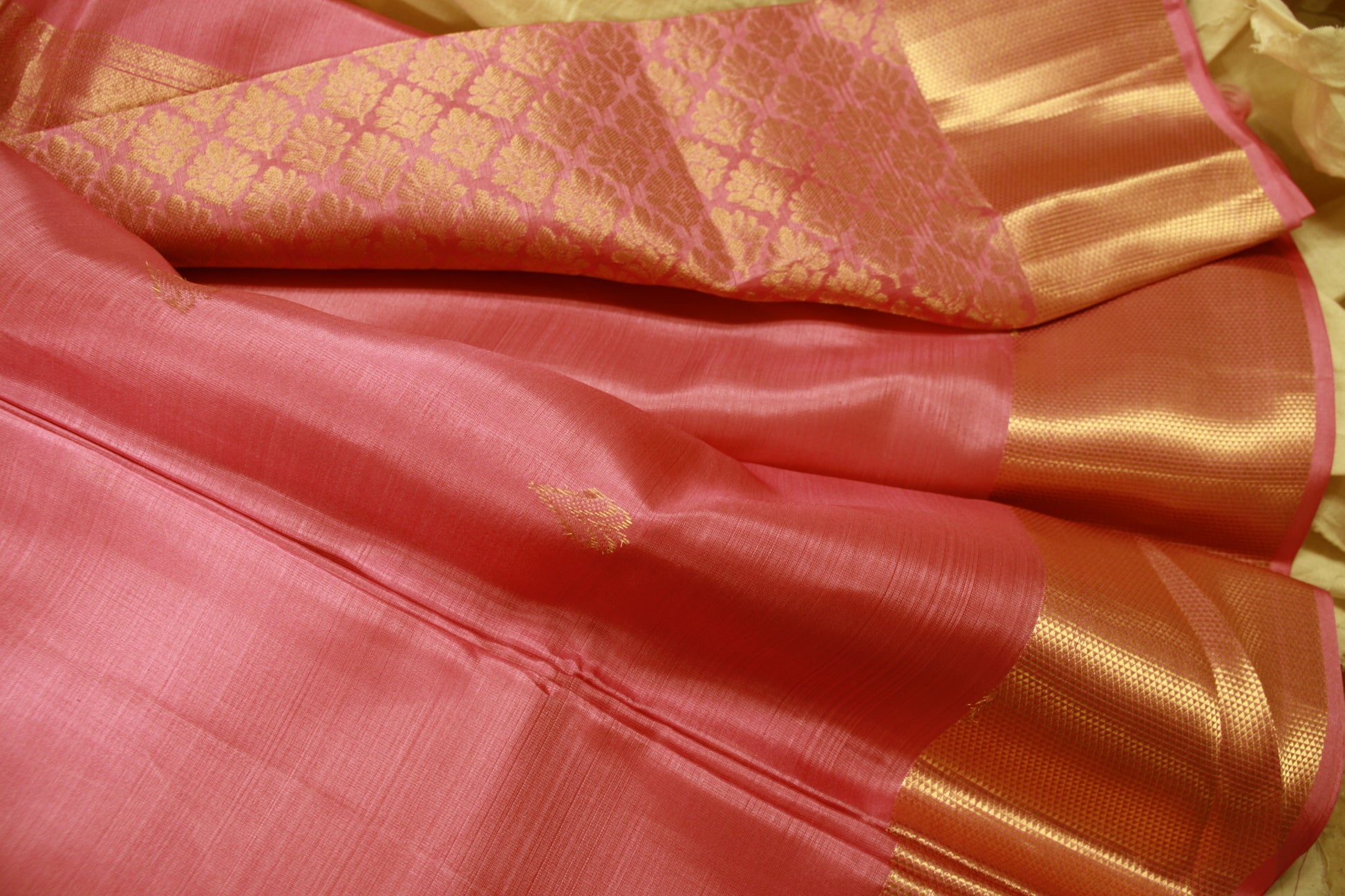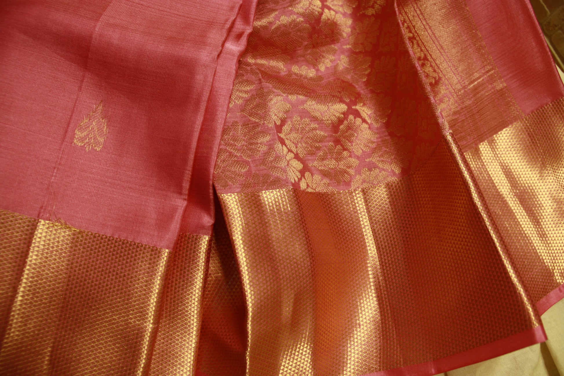 Lotus Pink Pure Silk Kanjivaram Lightweight Saree with Golden work | SILK MARK CERTIFIED