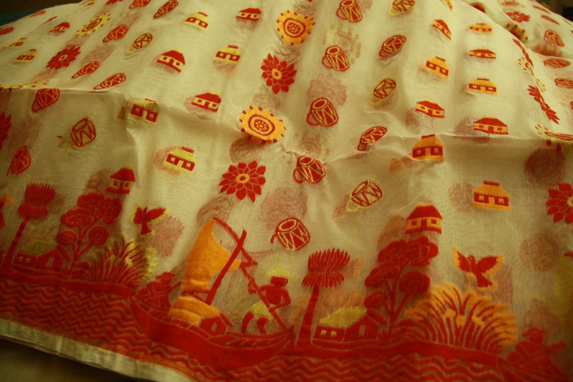 Pure White Cotton Handwoven Saree | Bengali Jamdani Saree
