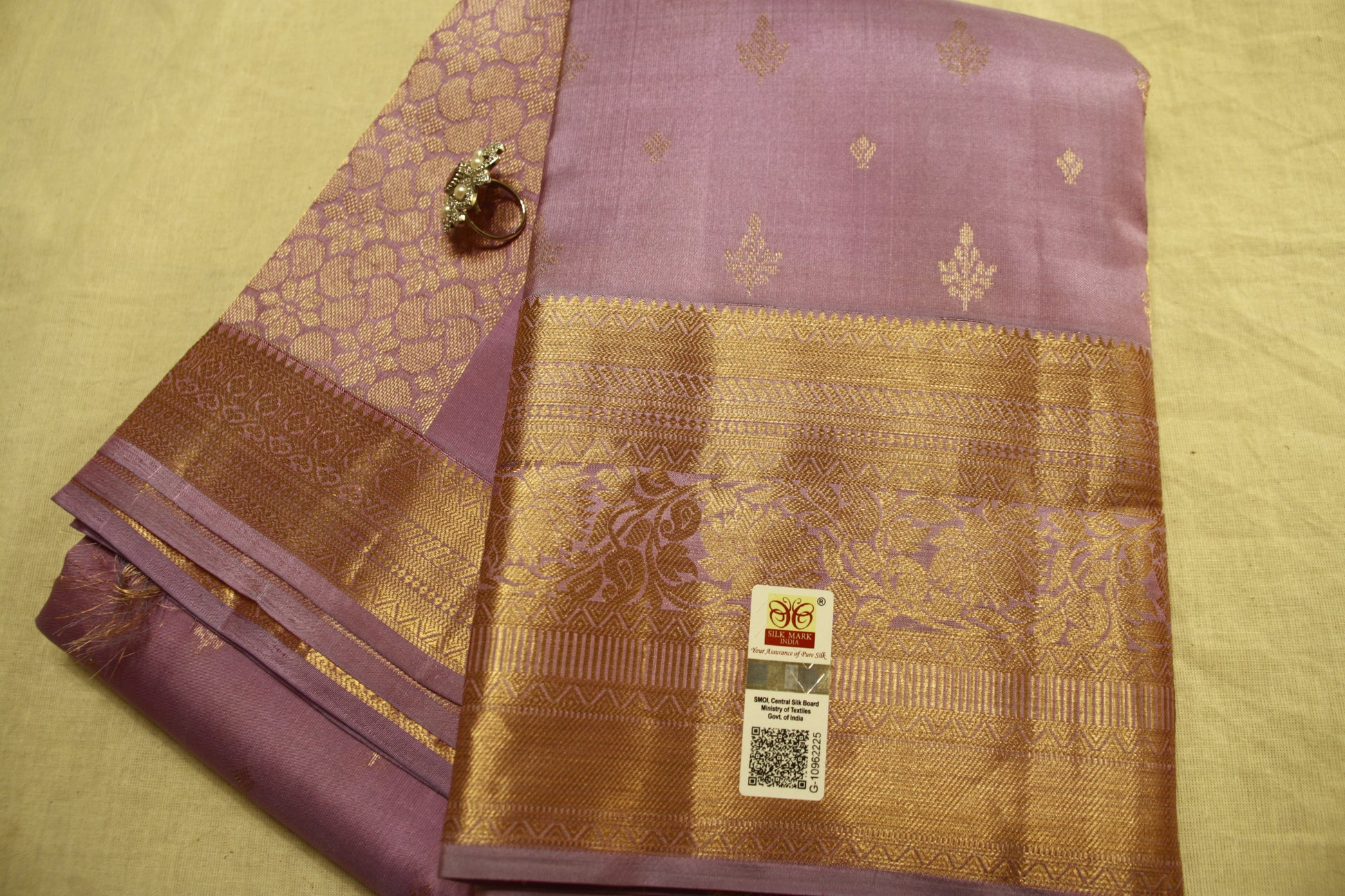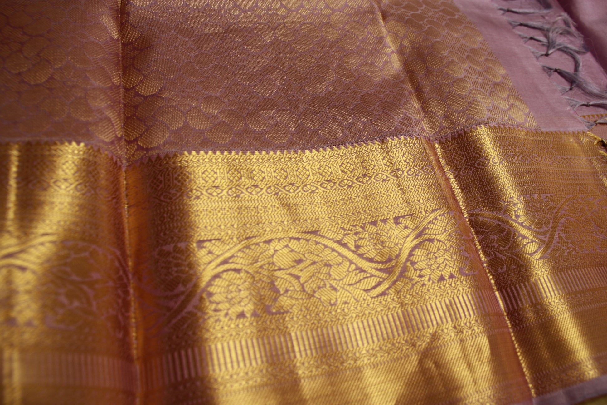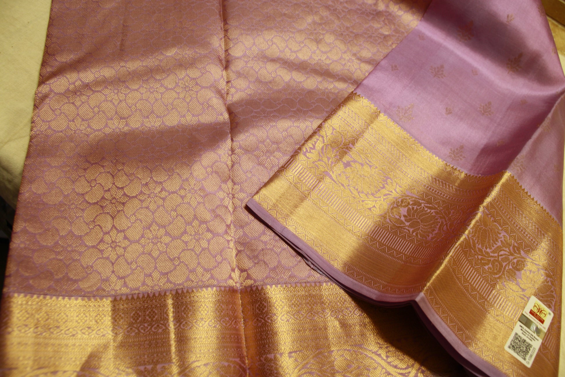 Rare Find! Very Lightweight Lavendar Color Pure Silk Kanjeevaram Saree Golden Zari Pallu | Silk Mark Cert