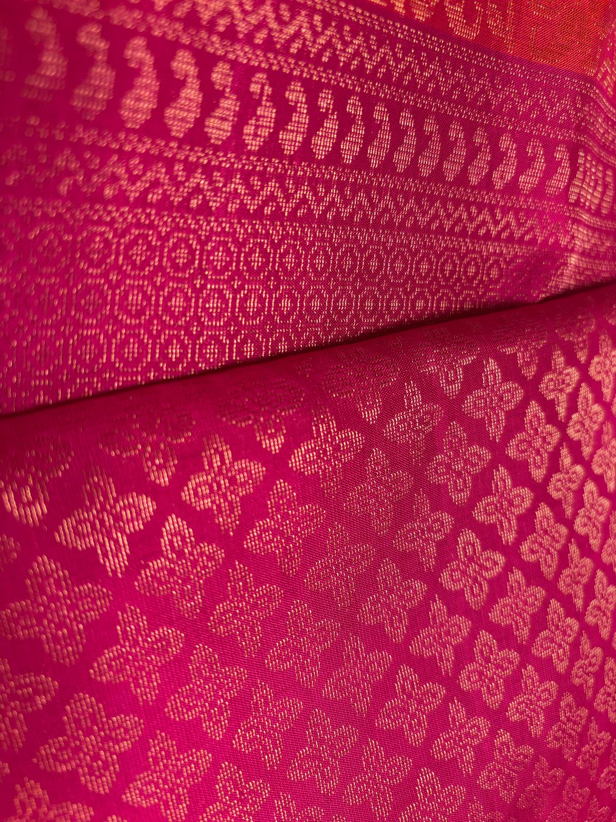 Very Lightweight flowy Pink Orange mix Color Pure Silk Kanjeevaram Saree Golden Zari Pallu | Silk Mark Cert