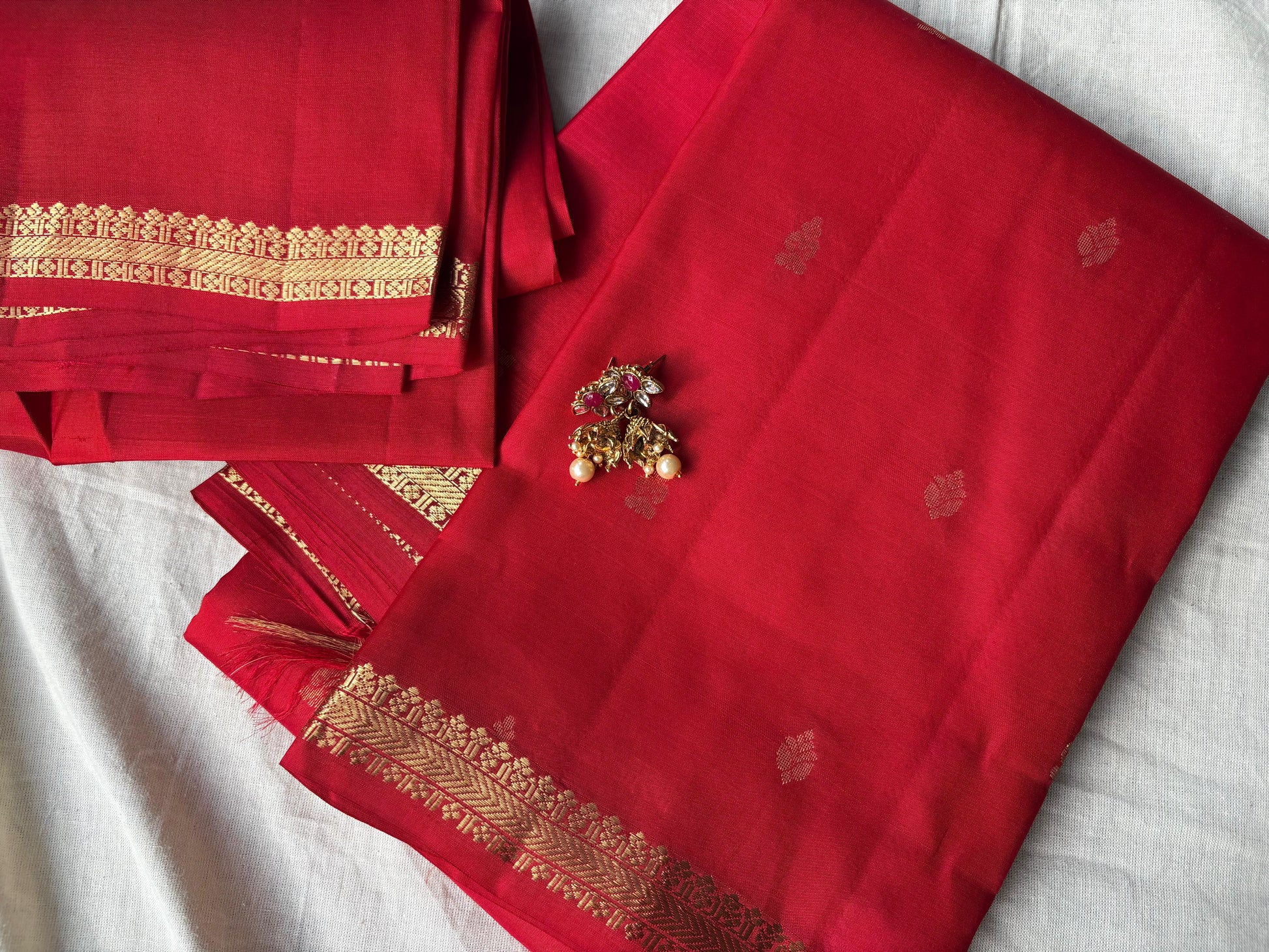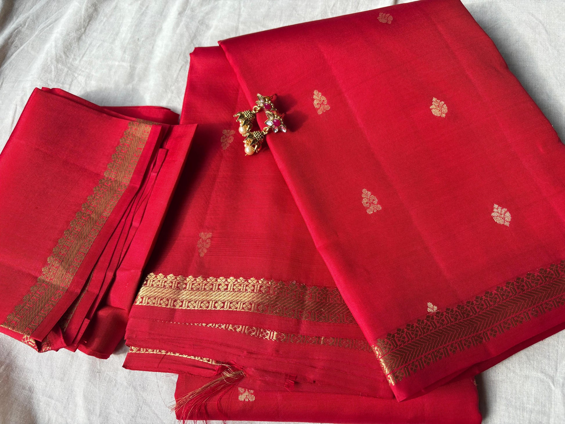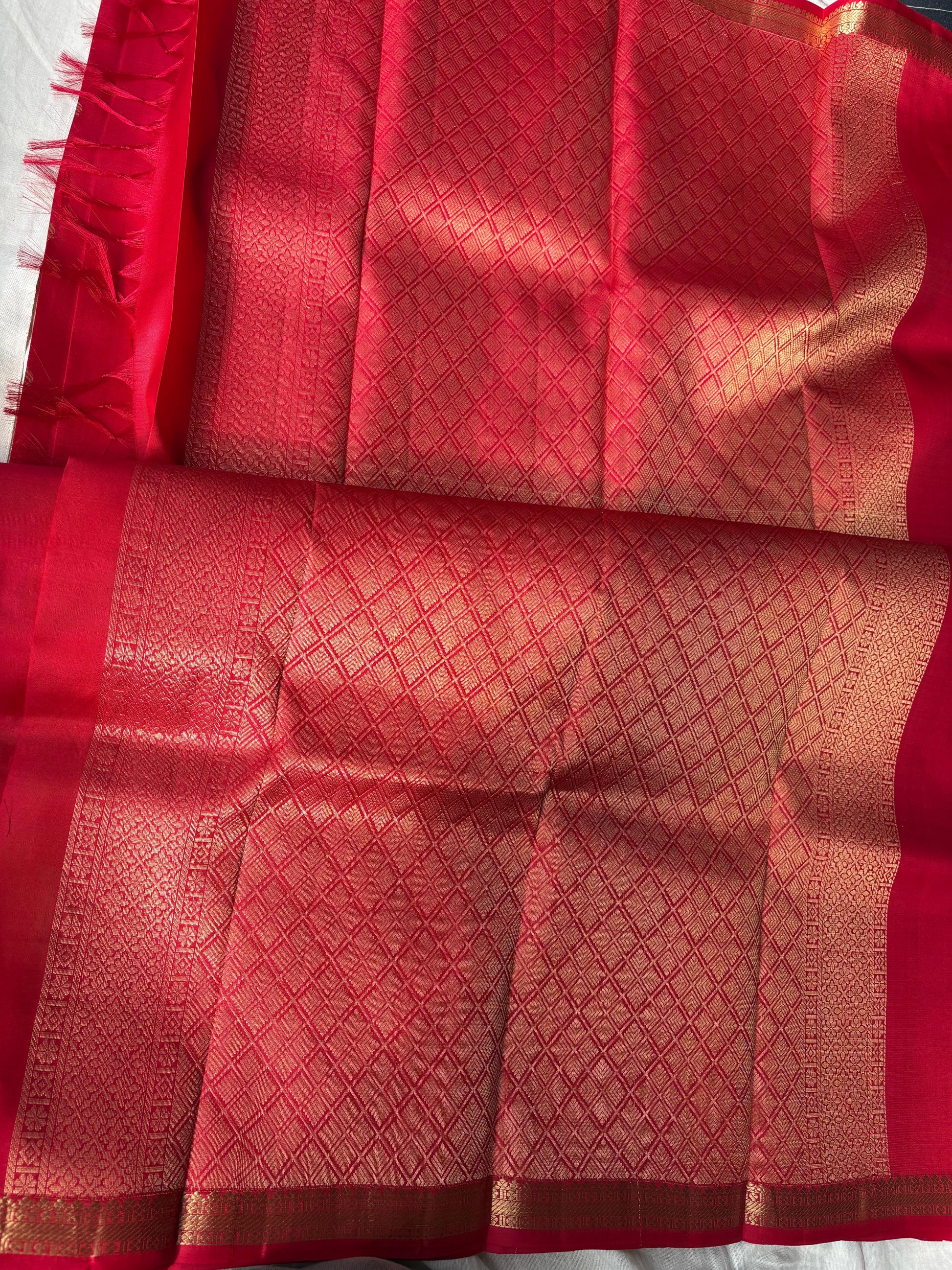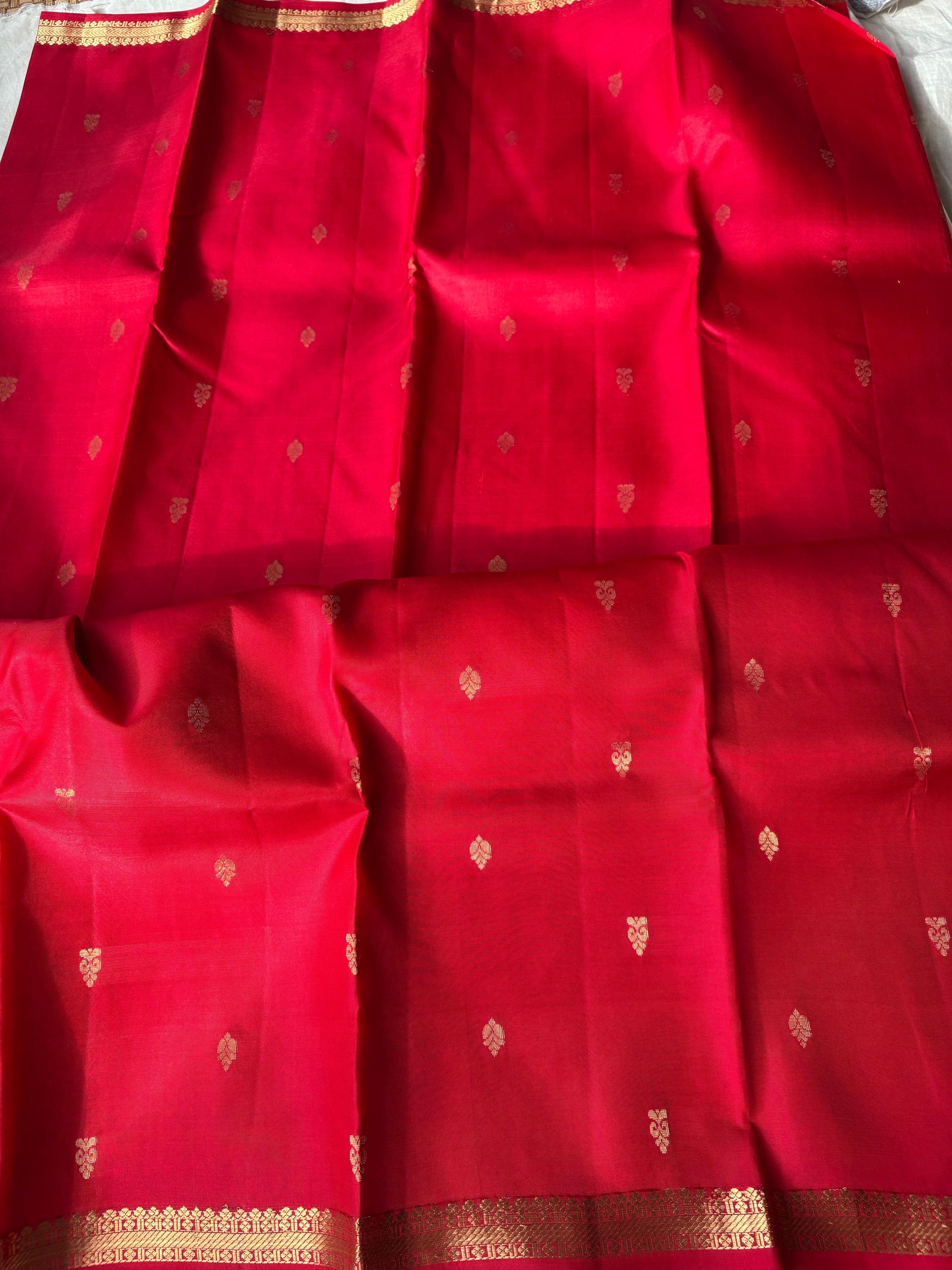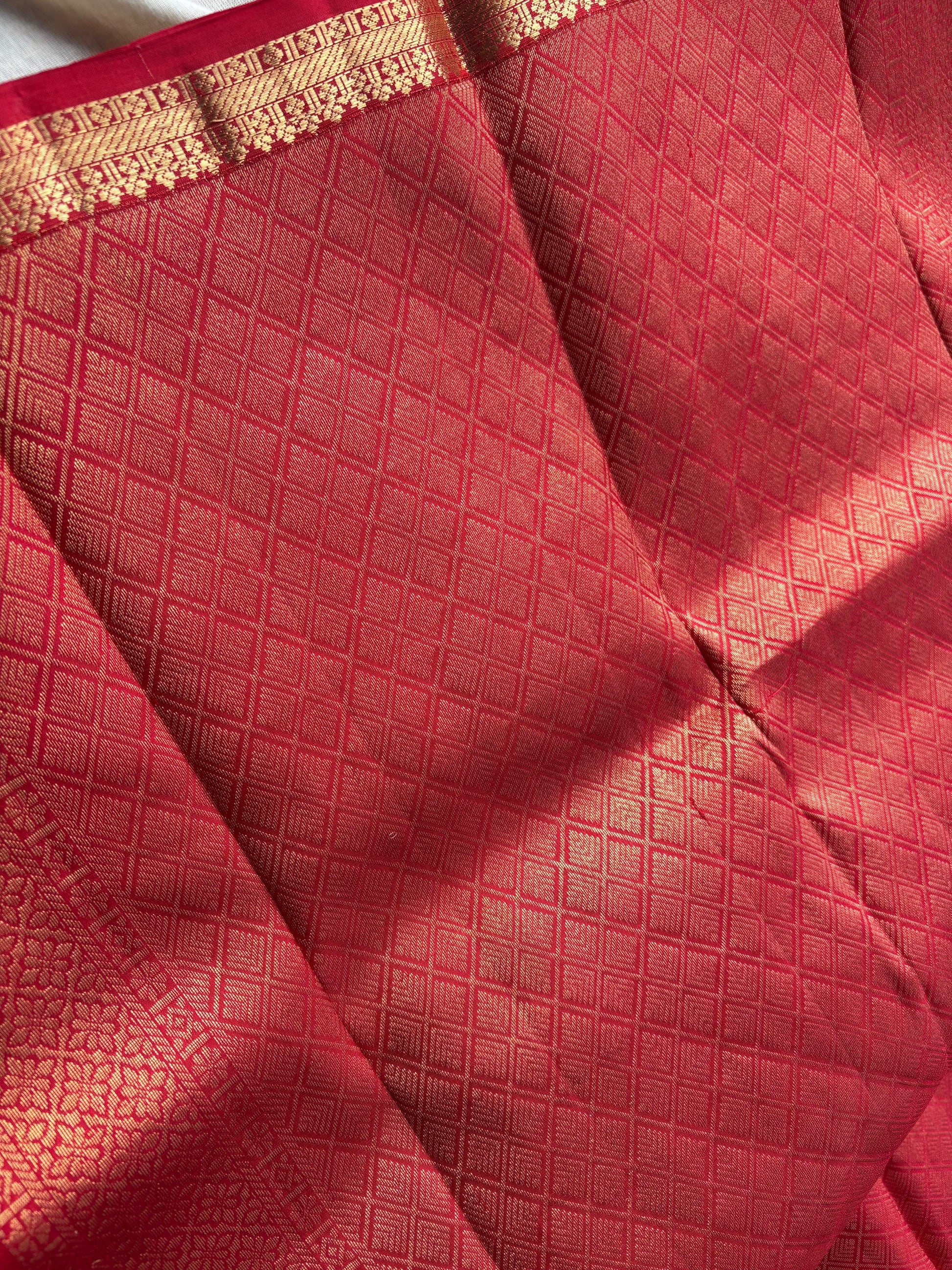 Very Lightweight Flowy Red Color Pure Silk Kanjeevaram Saree Red Golden Zari Pallu | Silk Mark Cert